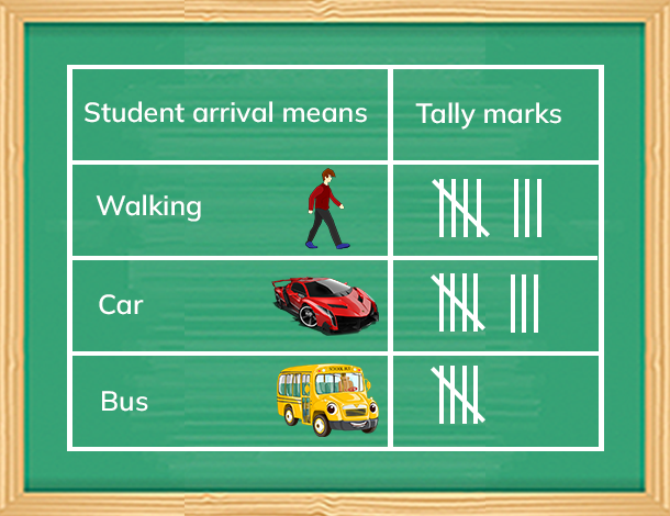 Look at the tally chart and drag the pictures to fill in according to the tally counts.