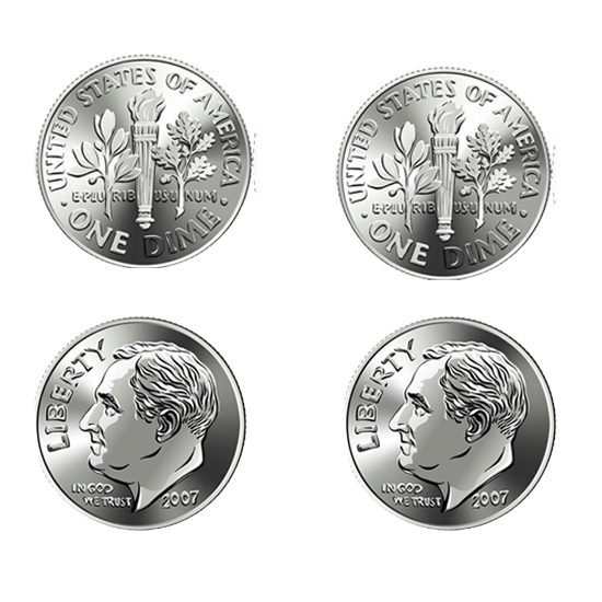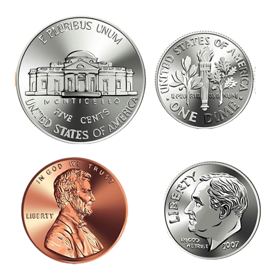 Which group of coins adds up to 50 cents?