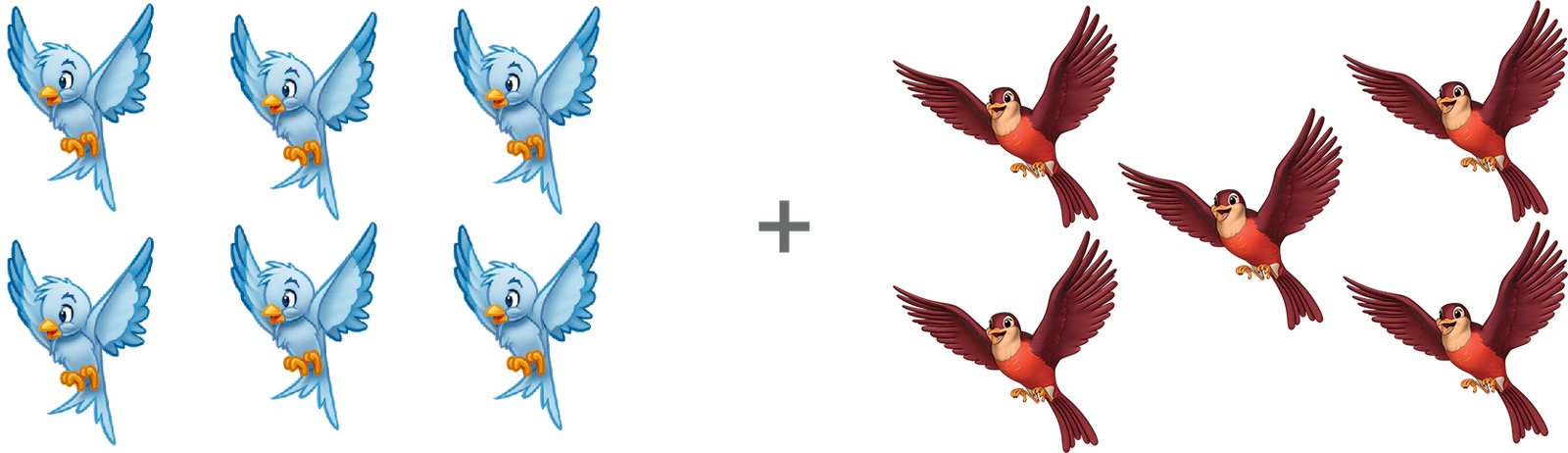 There are 6 birds on a tree. 5 more birds join them. How many birds are there in total?