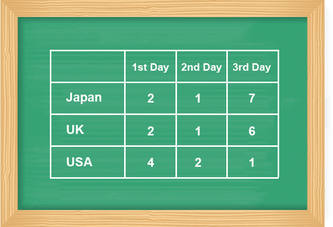 Three countries took part in a meeting. Based on the chart, how many participants were from Japan?