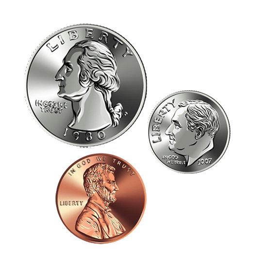 Which group of coins shows the same amount as 56¢?