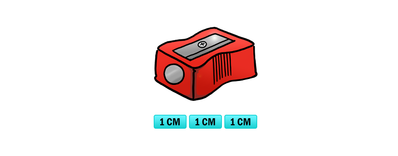Look at the centimeter blocks. What is the estimated length of a sharpener in centimeters?