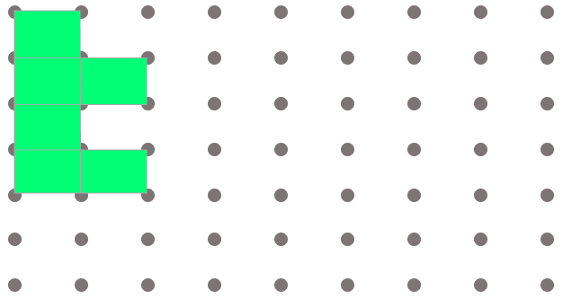 What is the perimeter of the 4 squares? Each square is 1 square unit. Remember, the perimeter is the distance around the outside of the shape.