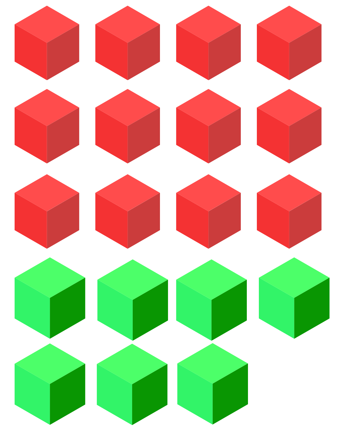 A bag has 12 red cubes and 7 green cubes. What is the chance that you will pick a green cube?