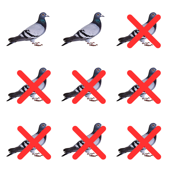 Start with 9 pigeons. If 7 pigeons are taken away, how many pigeons are left? Write the answer in the box.