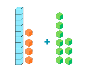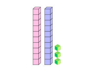 The blocks show 14 + 9. Which regroup shows the exact number? Pick the correct answer.