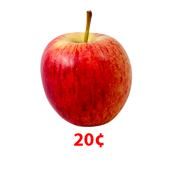 Alvin has 50 cents. He buys an apple for 20 cents. What other fruits can he buy with the remaining money?