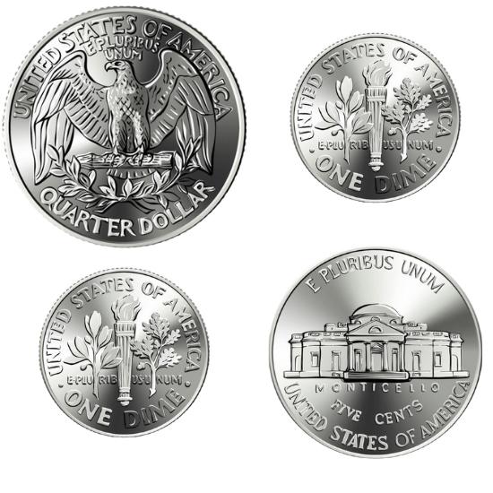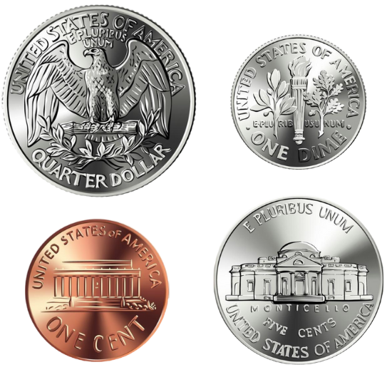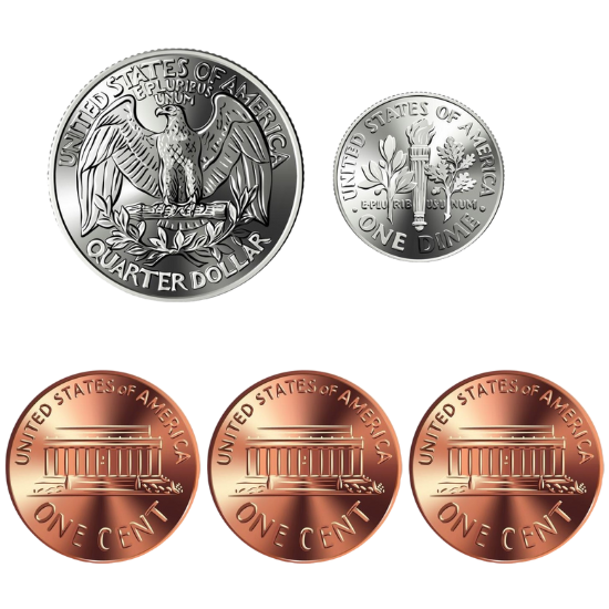 You have $10.00, and you want to buy a map of the United States that costs $9.59. How much change will you get after you pay for the map? Choose the correct coins from the list.