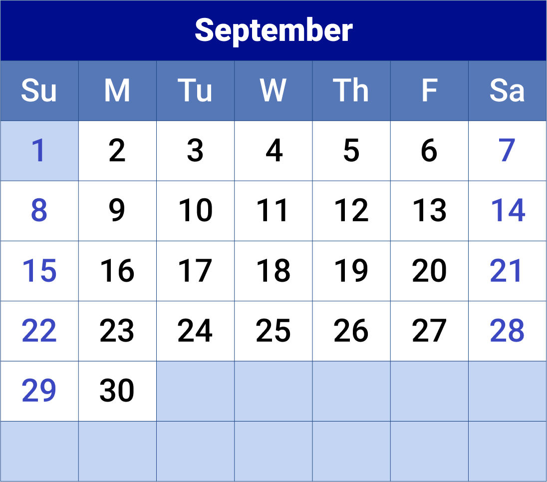 Look at the calendar. What day of the week is the 19th of the month?
