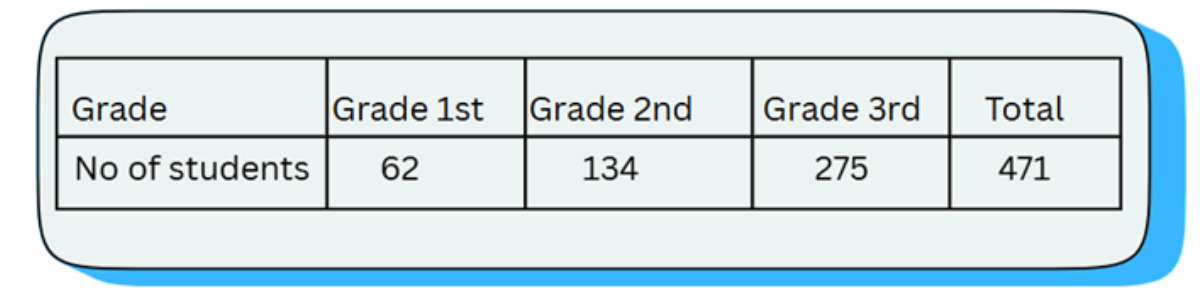 Look at the table. It shows the number of students in 1st grade, 2nd grade, and 3rd grade. How many more students are in 2nd grade than in 1st grade? Complete the subtraction sentence.