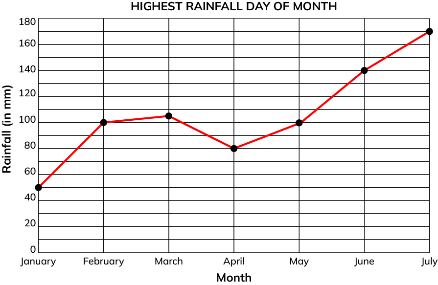 A meteorology department recorded the Average rainfall from January through July in milliliters. Based on the information answer the questions below.