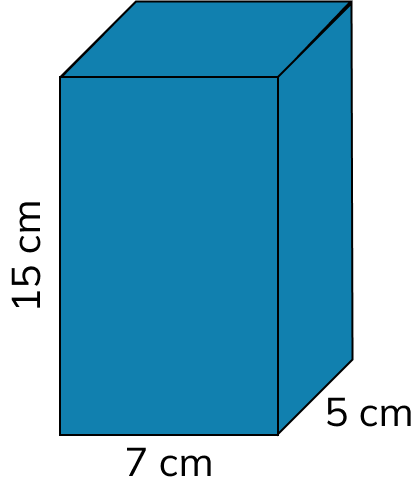 Find the volume of solid. Where Volume= L × B × H or Area × height