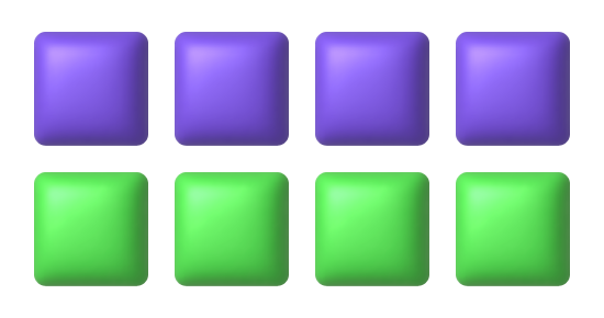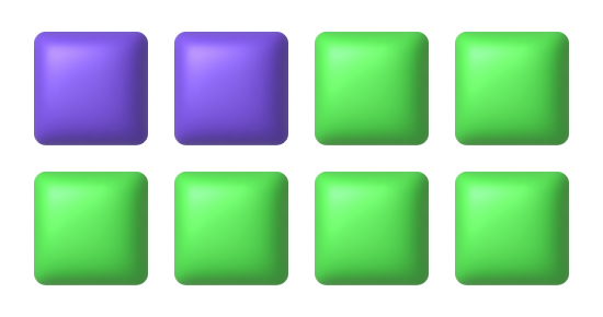 Which pair of the different colored pictures shows 2 + 6 = 8?