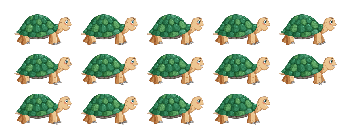 Which picture has 14 turtles?