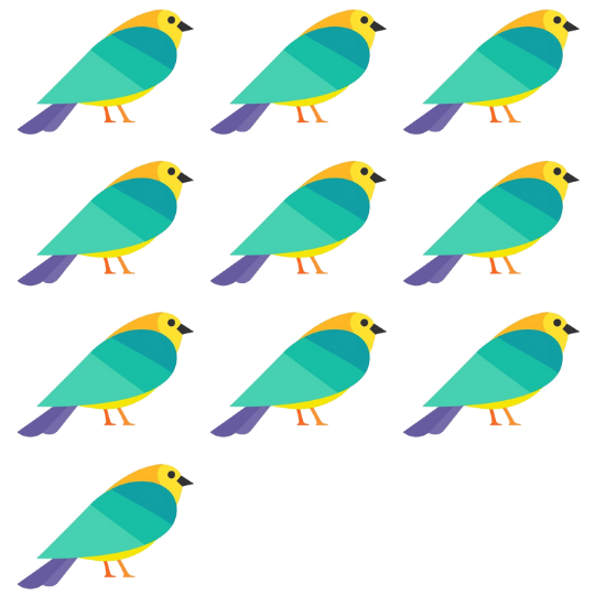 There are 10 birds. If 7 are left, how many flew away? Fill in the box to complete the sentence.