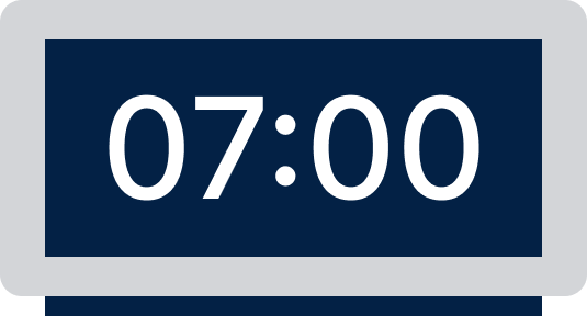 Rita is ready to eat breakfast. The digital watch shows 7:00.