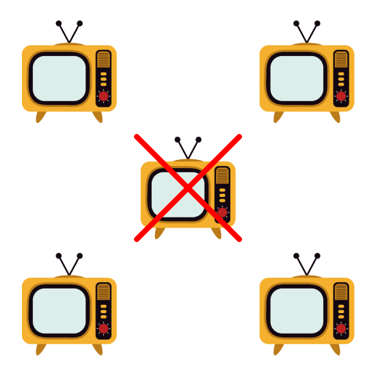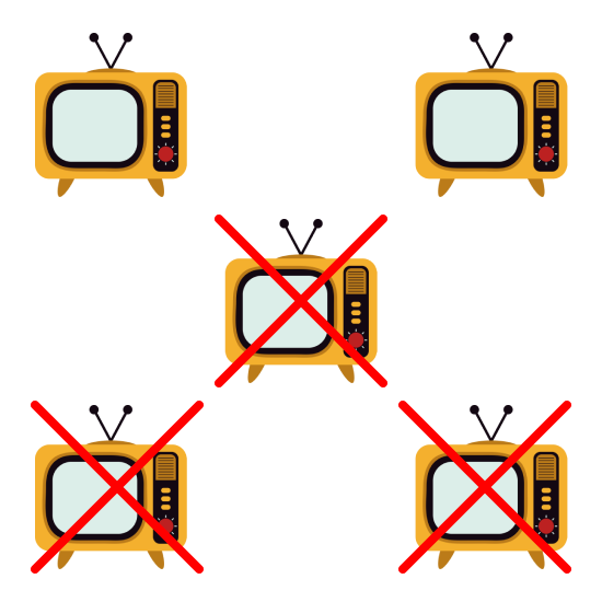 Which picture shows 5 take away 1 (5 - 1)?